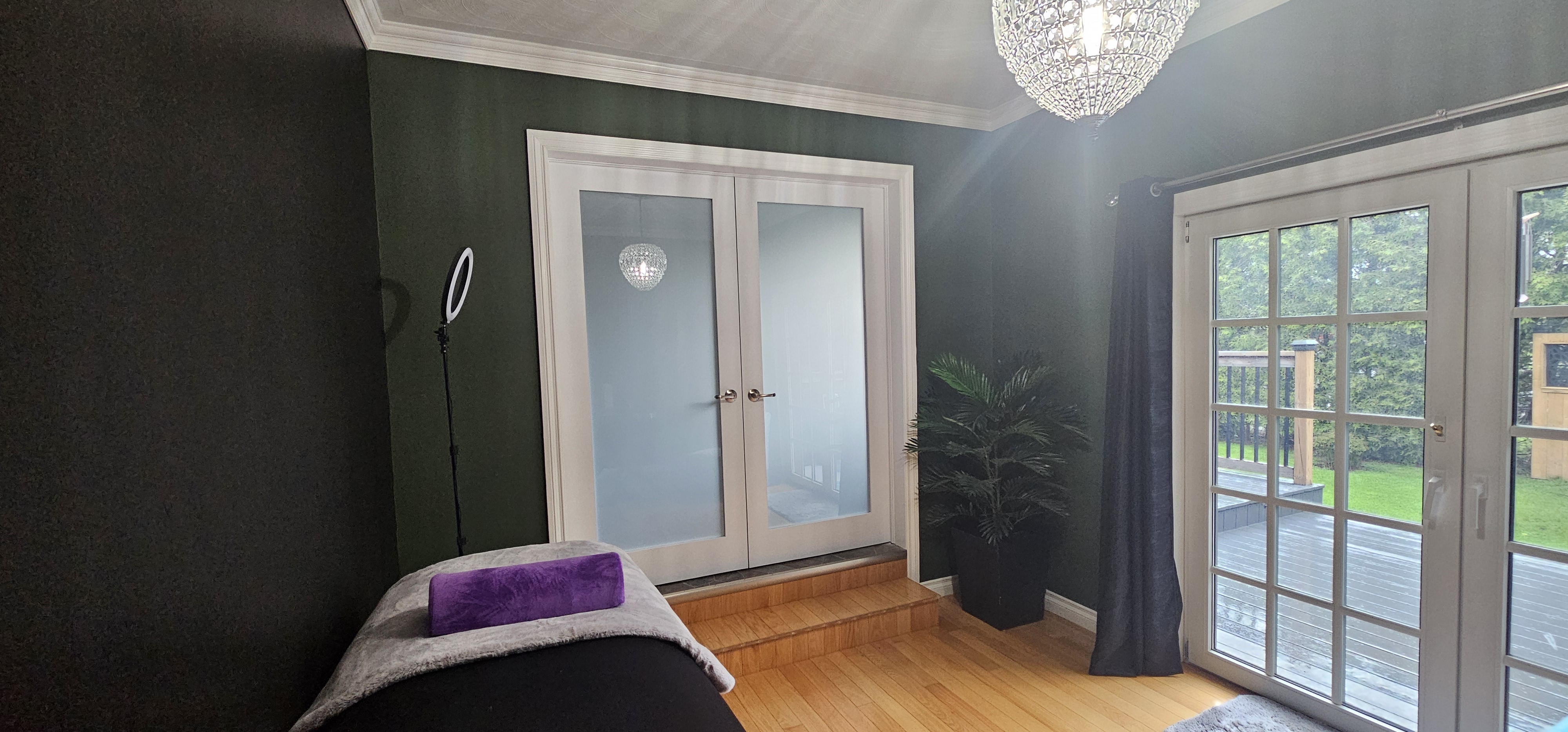 New clam vibes for a work space in Norwood Ontario with a black accent wall.