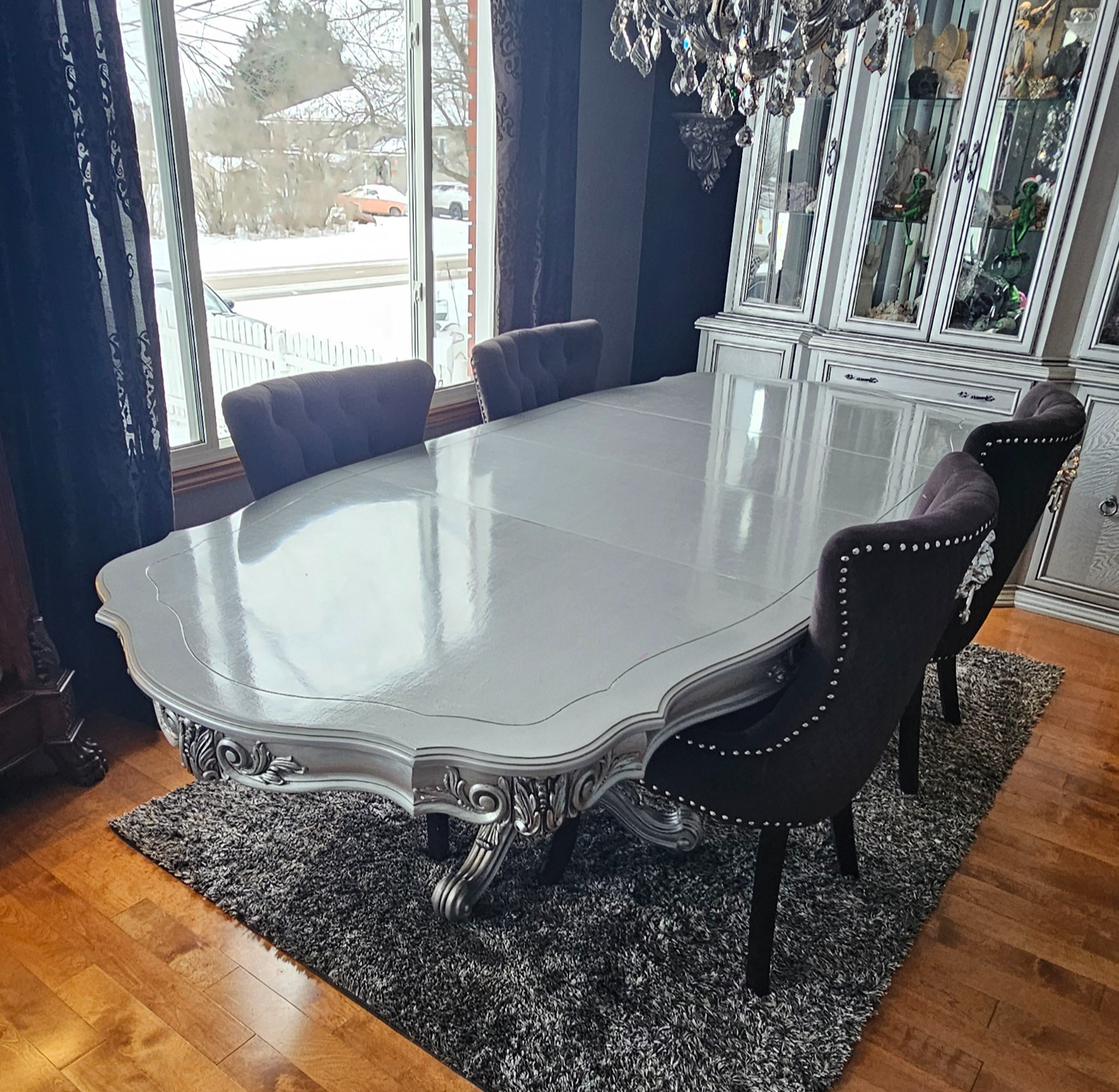 Dining table refinish, with 7 coats of clear coat, wet sand, and a polish!