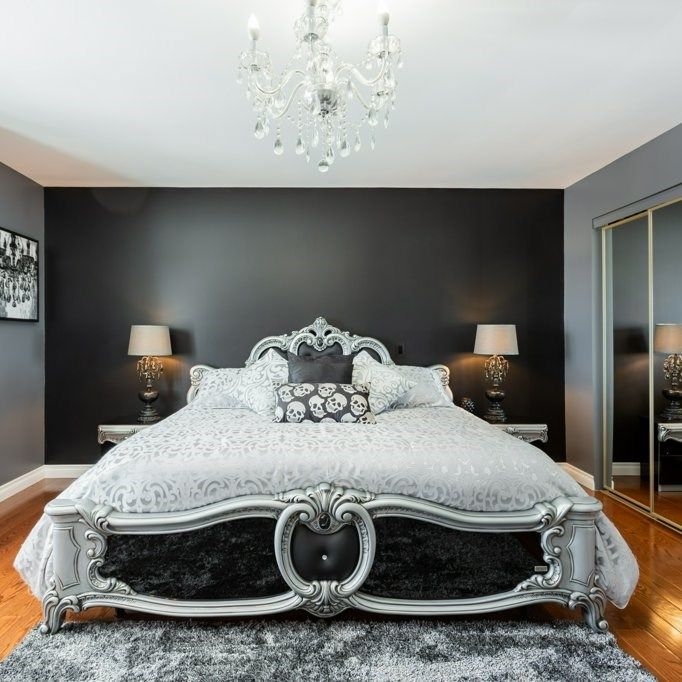 Making a statement in this master bedroom with an accent wall professional paining and herringbone hardwood floor.