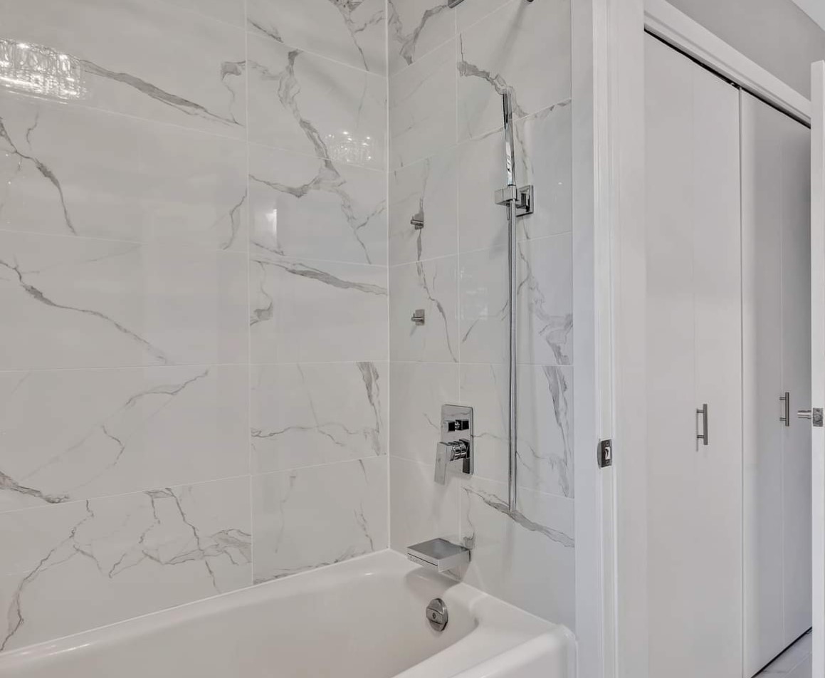 New tile surround and full bathroom remodel for a clean updated look