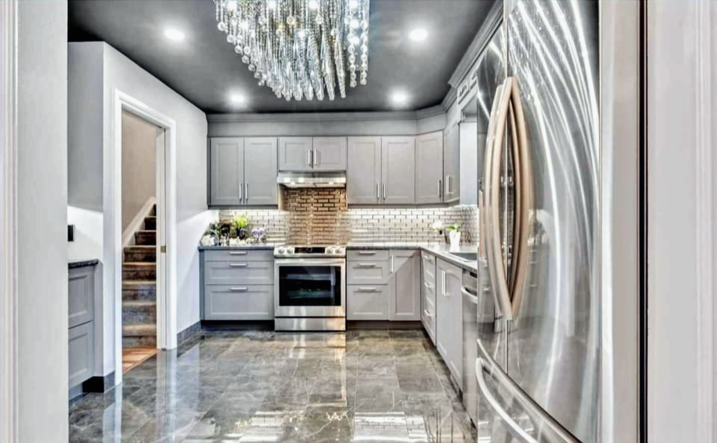 New custom built kitchen from the floor to crown moulding, hard to believe its the same space!